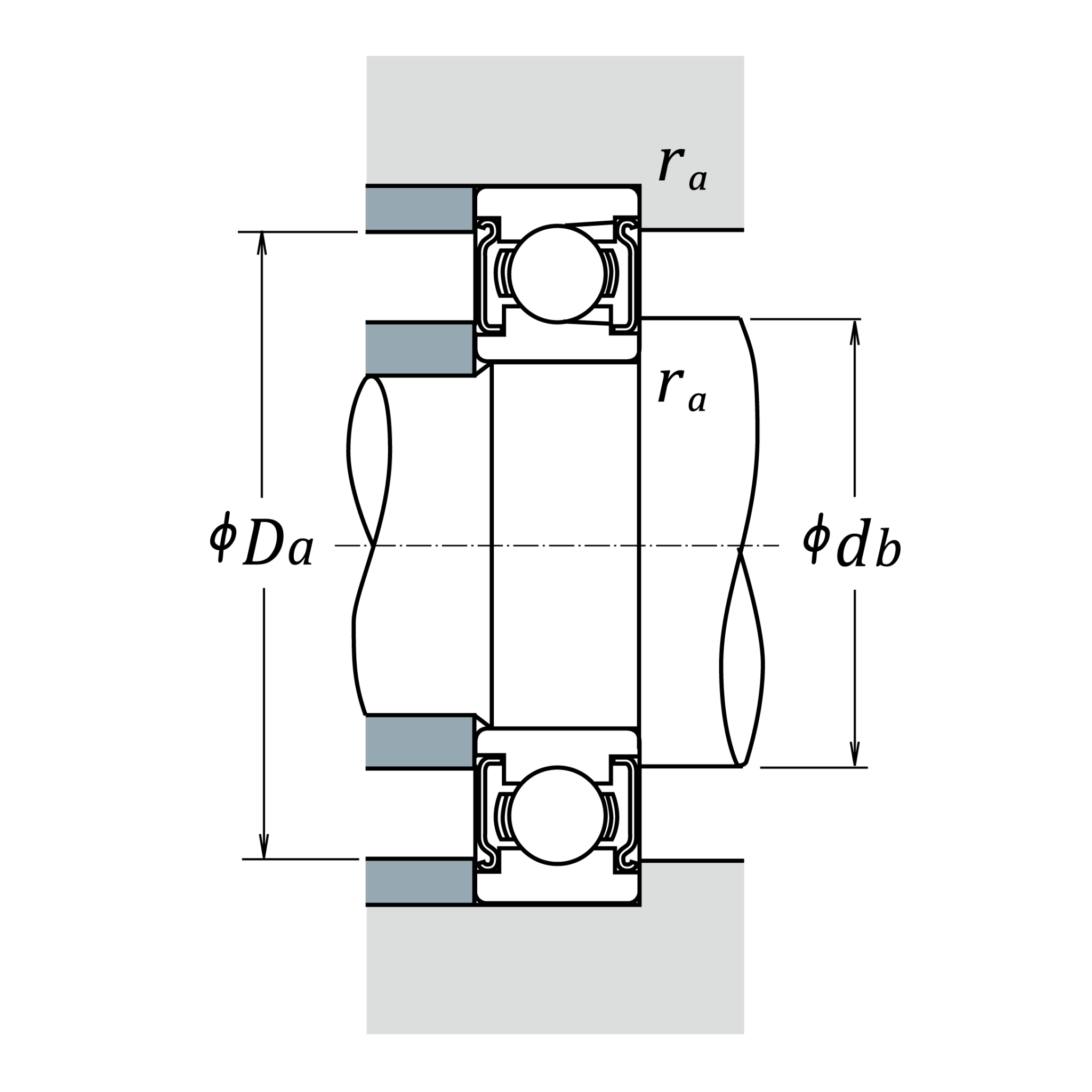 ra (max.)2mmRadius of shaft or housing fillet
