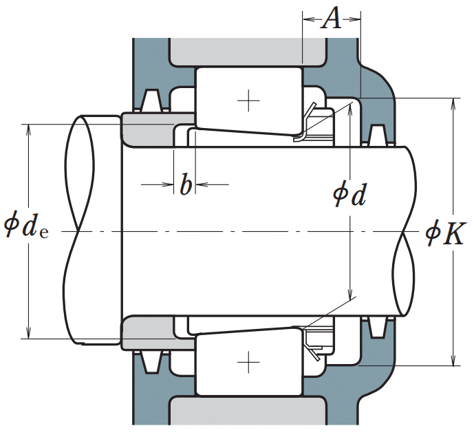 | A(min.) | 19 | mm | Internal clearance of outer ring from side face to housing |