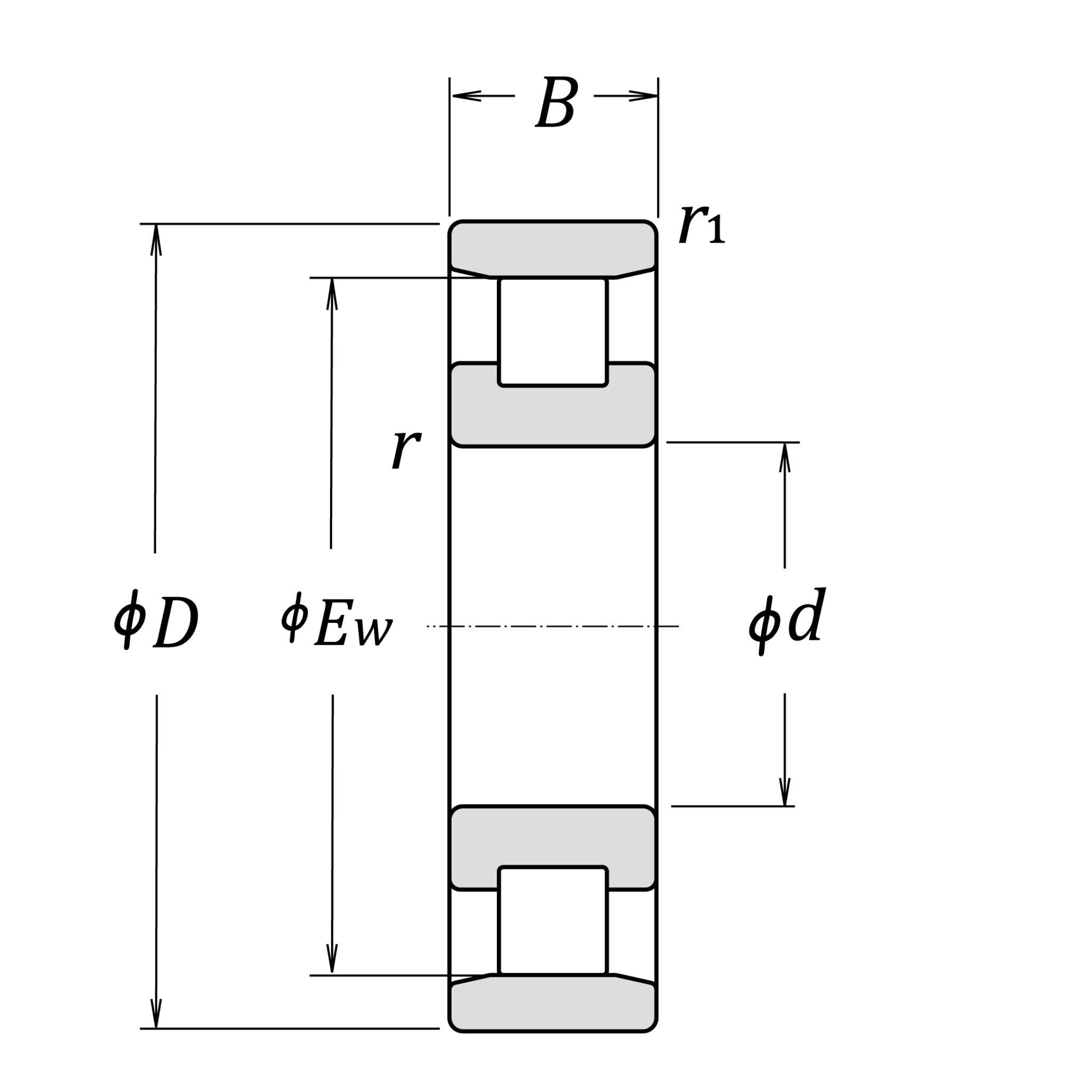 | EW | 55 | mm | Raceway diameter of outer ring |