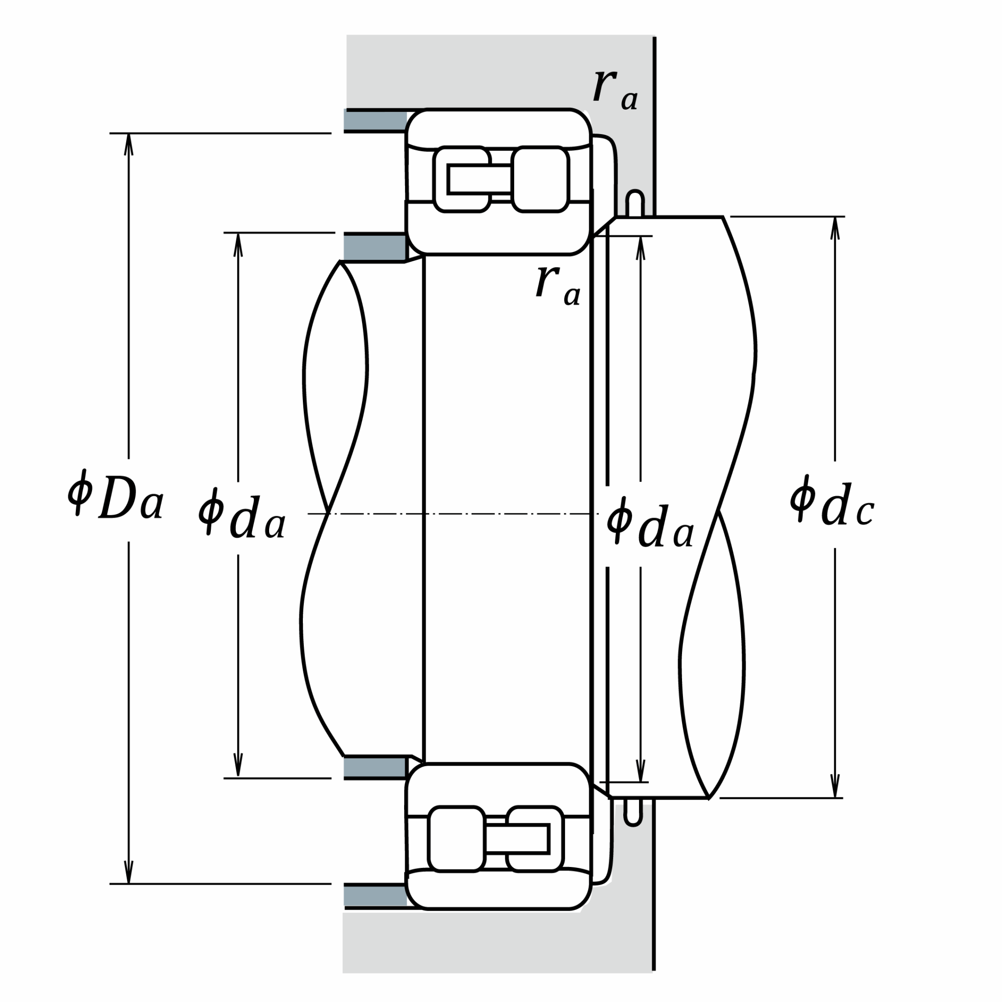 | Da (min.) | 50 | mm | Diameter of housing abutment |